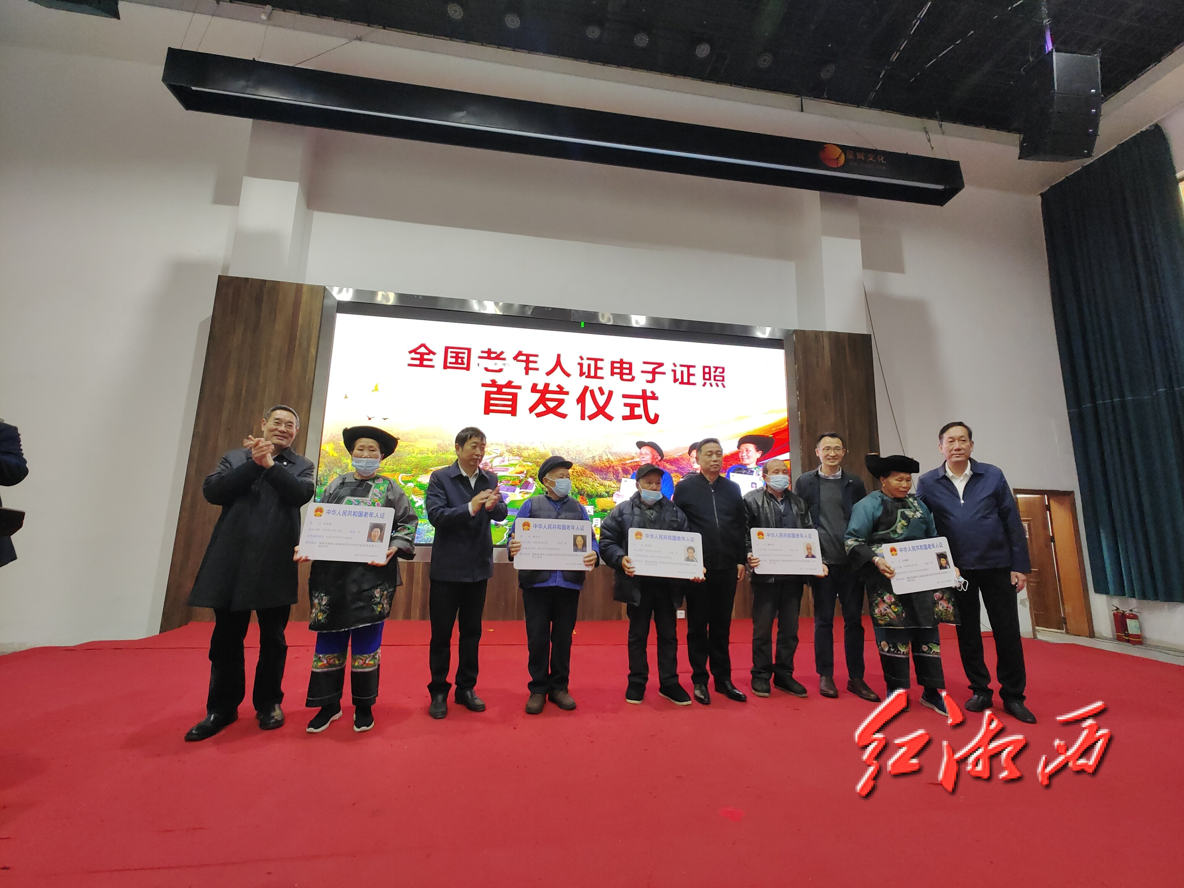 团结报·红湘西客户端12月10日讯(全媒体记者 阙志明 通讯员 魏芳柏 宿任人)今天,在全国精准扶贫“首倡地”——湘西州花垣县双龙镇十八洞村,石拔哑大姐领到全国首张老年人证电子证照。当天,十八洞村20名老年人代表先后领取了老年人证电子证照。州人大常委会副主任、民盟州委主委高湘文出席活动。