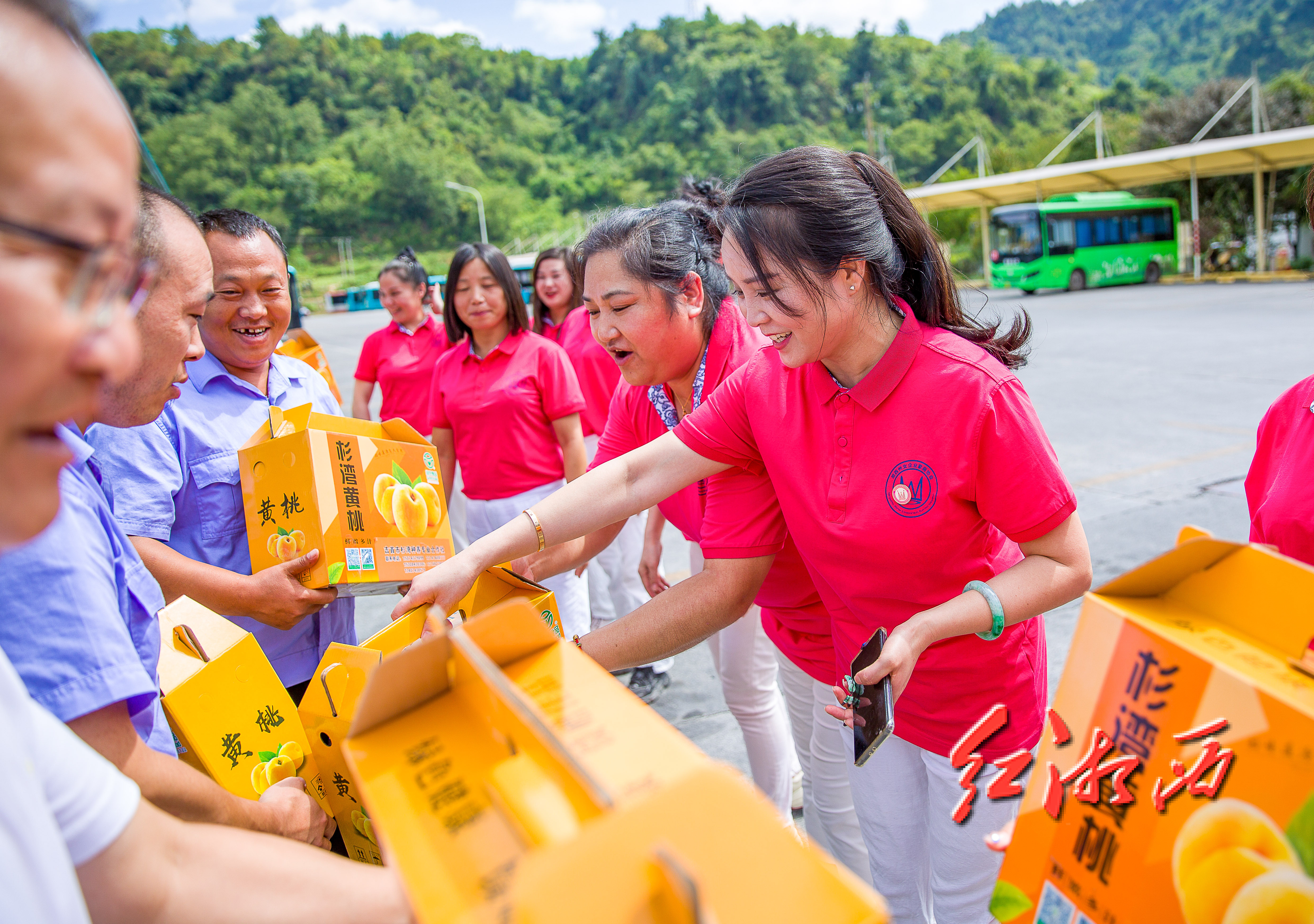 吉首公交车司机收到新鲜杉湾黄桃,甜脆解暑。