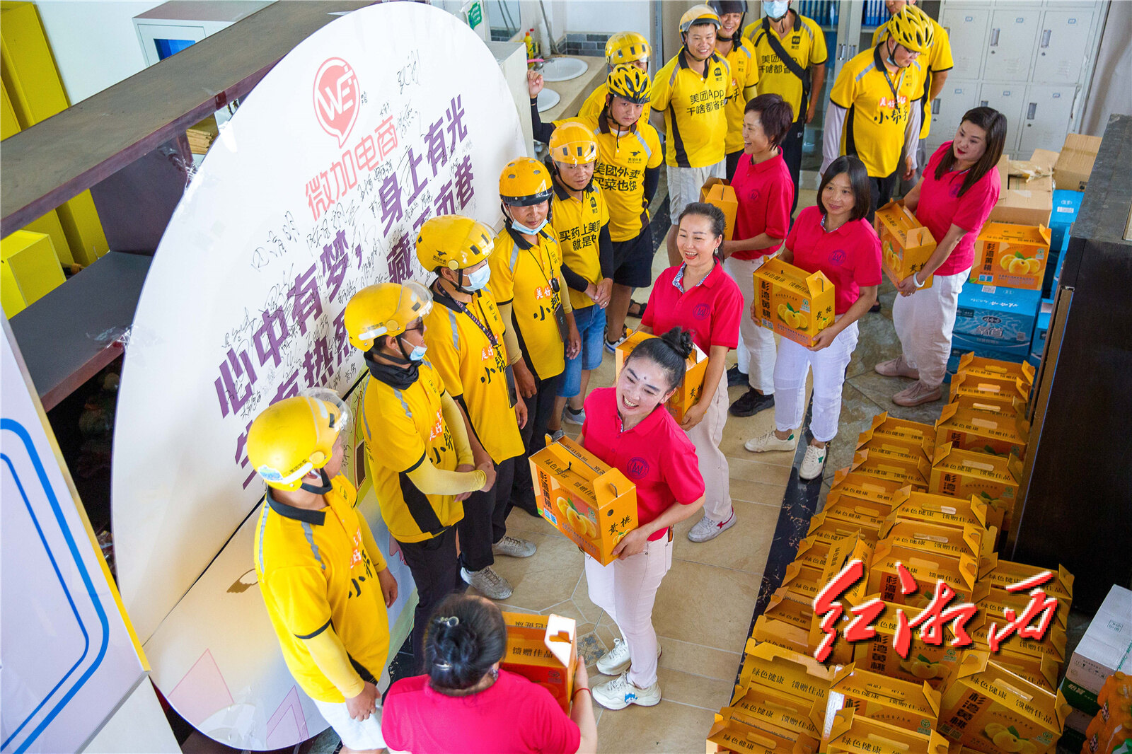 湘西州女企业家们上门将黄桃送给外卖小哥。