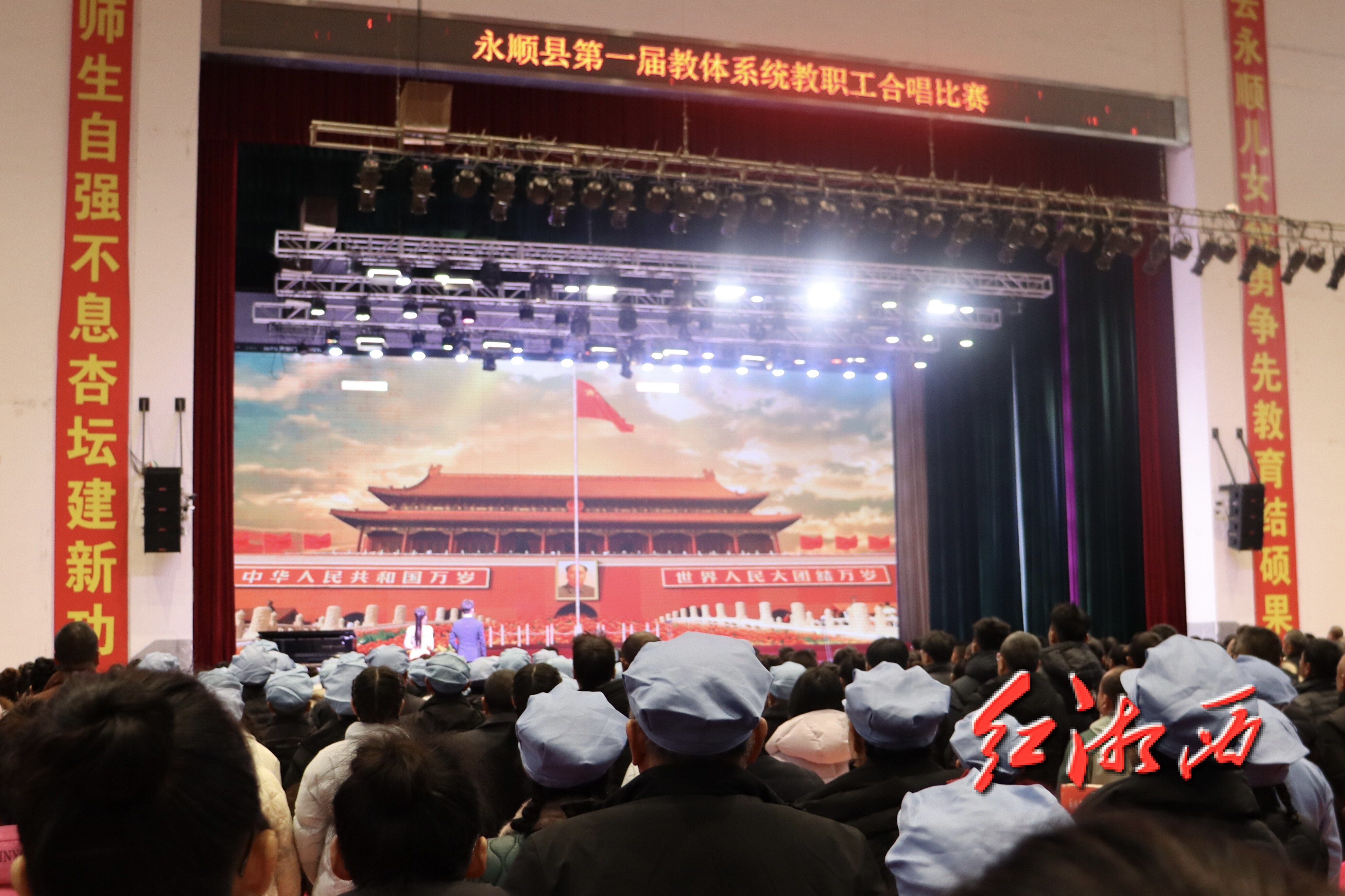 12月31日,永顺县首届教体系统教职工合唱比赛举行。来自全县的32支代表队齐聚一堂,齐唱国歌,以饱满热情展现育人风采。永顺县溪州芙蓉学校合唱团以饱满热情、和谐声部精彩献唱,展现教师团结奋进、追求卓越的精神风貌,为此次活动献上动人礼赞。庞飞羽 樊秋惠 摄影报道