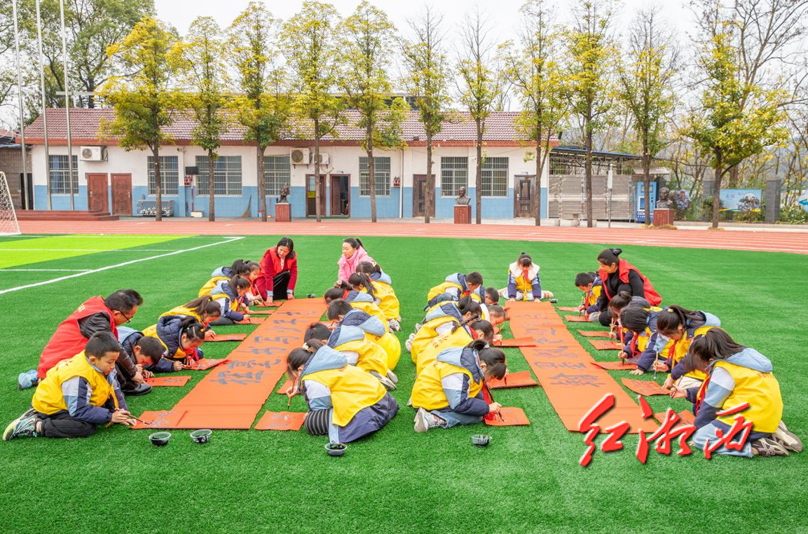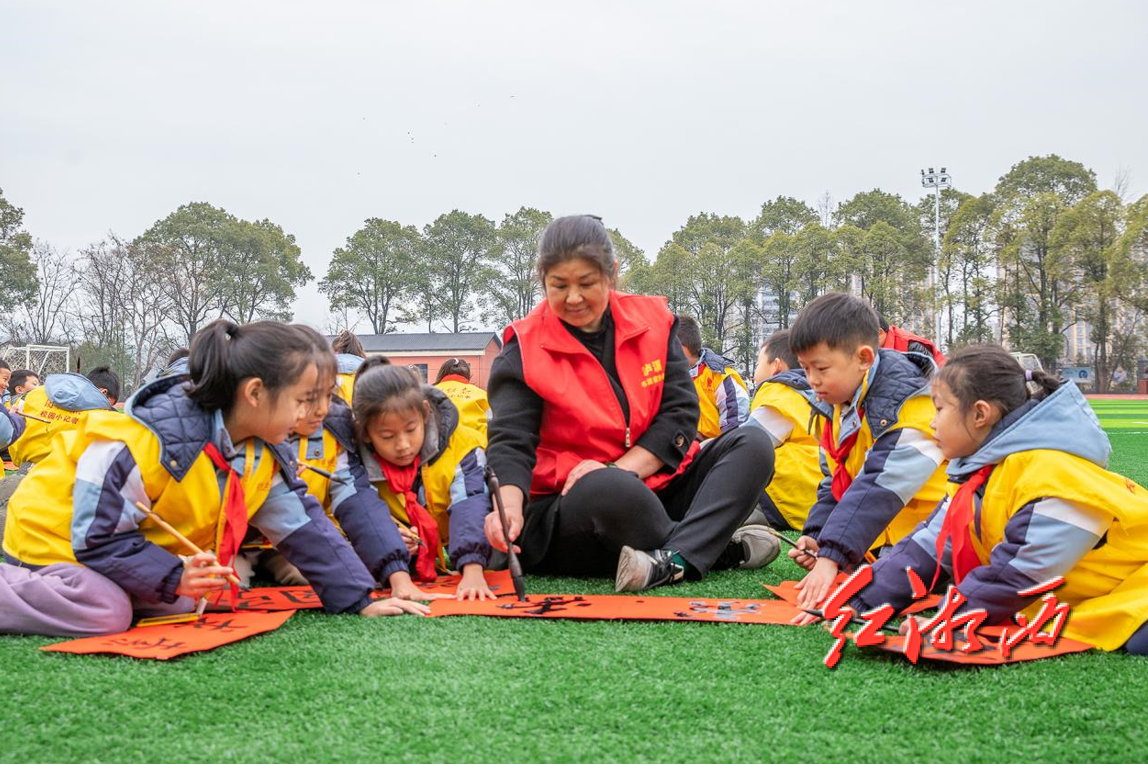 今天,杨老师带领我们二(2)班的校园小记者,和几位毛笔字写得非常好的老师一起,举行了“翰墨飘香迎新春,挥毫书写少年志”迎新春书法活动,我特别开心。