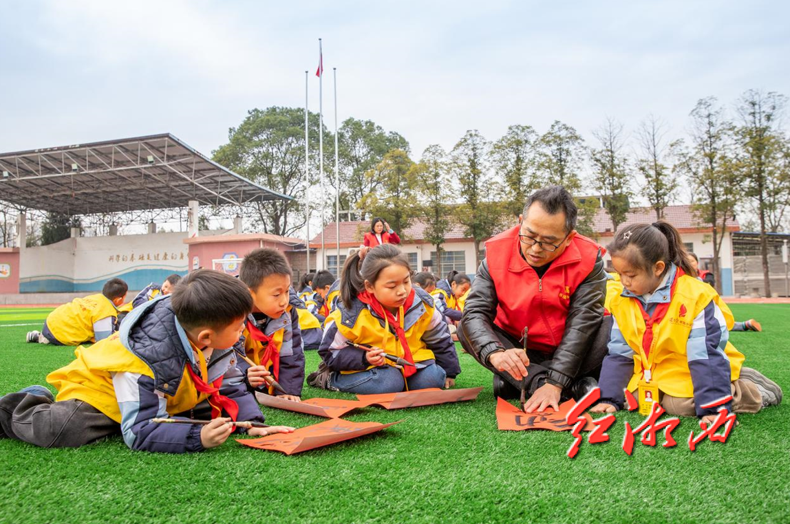 活动伊始,两位老师分别写下“翰墨飘香迎新春”“挥毫书写少年志”十四个刚劲有力的大字。闻着淡淡的墨香,我仿佛已经感受到了春节热闹的气息。杨老师还告诉我,他们都是书法协会的成员,难怪字写得那么好!