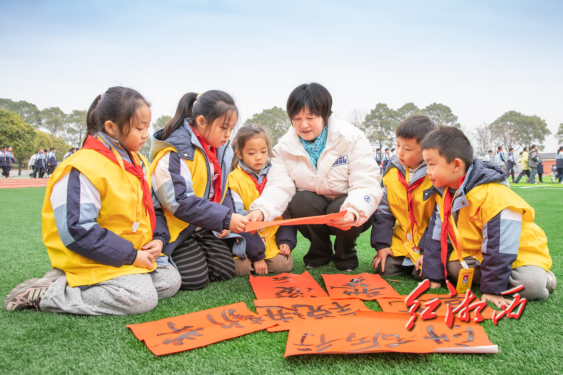 活动最后一个环节是作品展示。杨老师笑着说:“小记者们,把你们的成果展示给我们看一看吧!”我们立刻高高举起自己写的字,让老师们点评。看着老师们赞许的目光,我心里甜滋滋的。